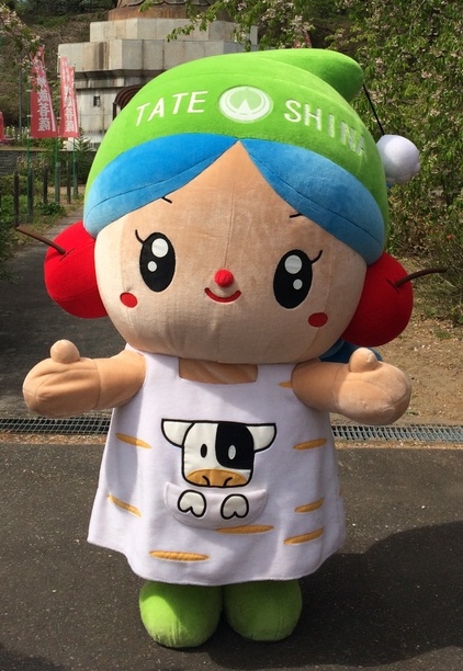 | 立科町マスコットキャラクター。 町章入りの帽子は木々の黄緑、帽子のボンボンはすずらんの花。 真っ赤でツヤツヤピカピカの耳あてはりんご。 水色の髪の毛は清らかな川などの流れ・しずく。ワンピースは白樺の木。ポケットから蓼科牛が顔を出しています。 緑の靴は大地の恵を表現しました。 立科町の食べ物が大好きで、みんなに立科町の良さを知って欲しいと思っています。 (公式ページより) |