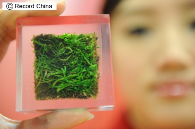 保存されていた。ケースに入れられている芝生は3cmほどに切り分けられ、