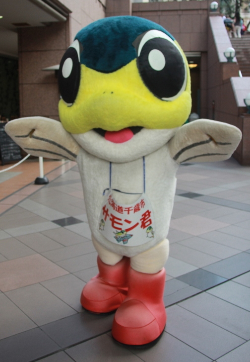 | 道の駅サーモンパーク千歳内の「サケのふるさと千歳水族館」マスコットキャラクター。 鮭の稚魚がモチーフで性別はオス。 |