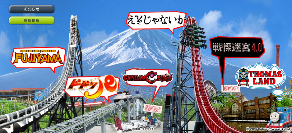 ええじゃないか、FUJIYAMA、ドドンパ の3大コースターをはじめ、カップルやグループ、ファミリーまで楽しめる 様々なアトラクションが備えられています。