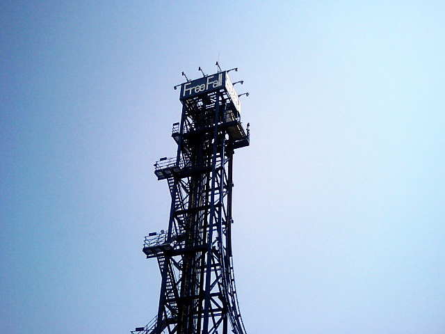 フリーフォール→滝を落下する水の様になれる絶叫マシン。地上40m。