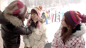 そして、ナビゲーターの2人はゲレンデで映えるメイクに自らチャレンジ!!