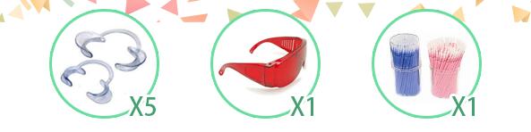 マウスオープナー5個、アプリケーター1個、アイガード1個を無料でサービスいたします。