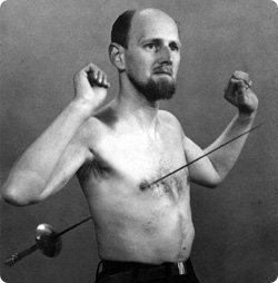 上半身裸の状態で剣を突き刺す 見た目は確実に剣が刺さっている トリックとは思えない