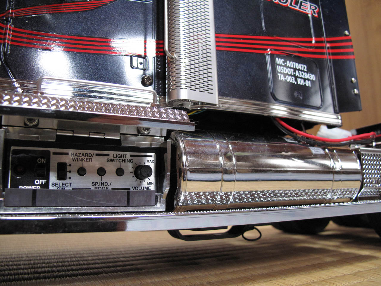連結部分やシフトチェンジ(前3段後1段)ヘッドライト、車幅灯、ウィンカー(右に回ると右が点灯:左も同様)バックライト・スピード天井灯、フォグランプ・・ライト系はすべてLEDライト搭載(遠隔操作可能)