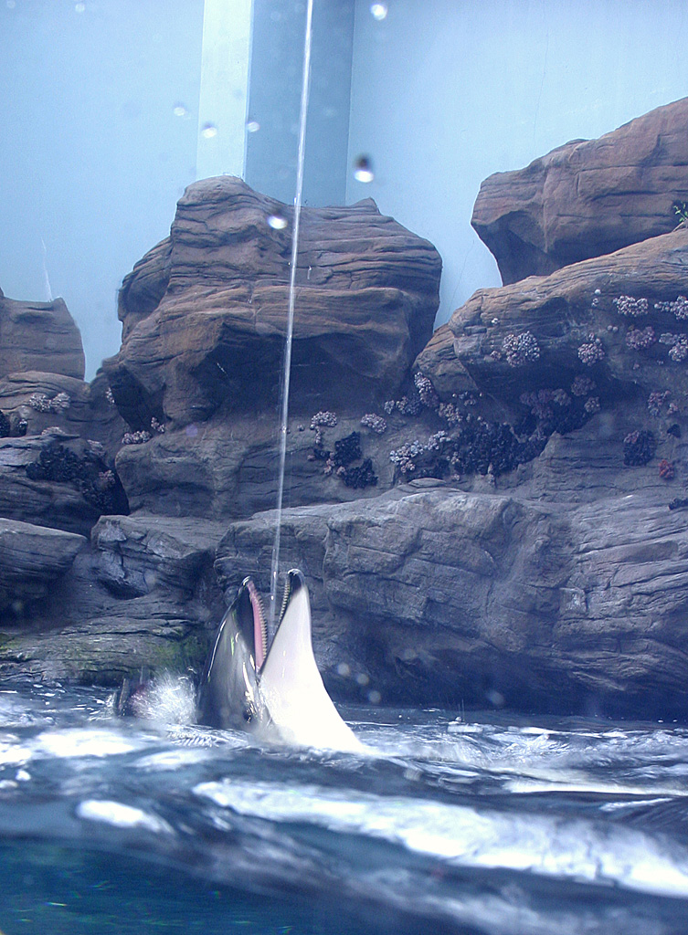 いや〜面白い写真でした。大阪の海遊館のなかにイルカに水を