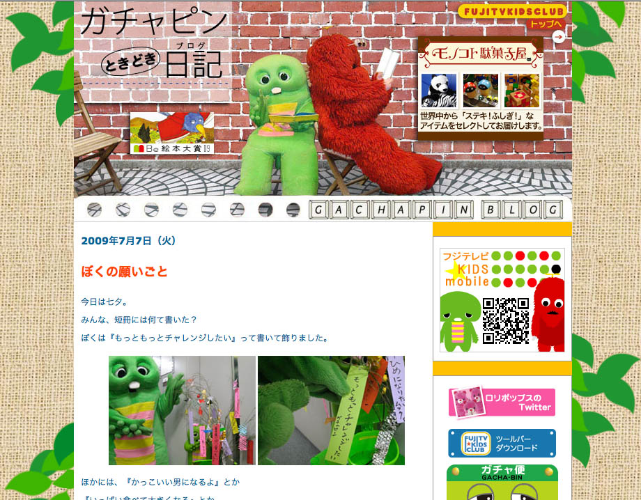 なんと あの万能怪獣ガチャピンが「ブログ」をやっていたのです!