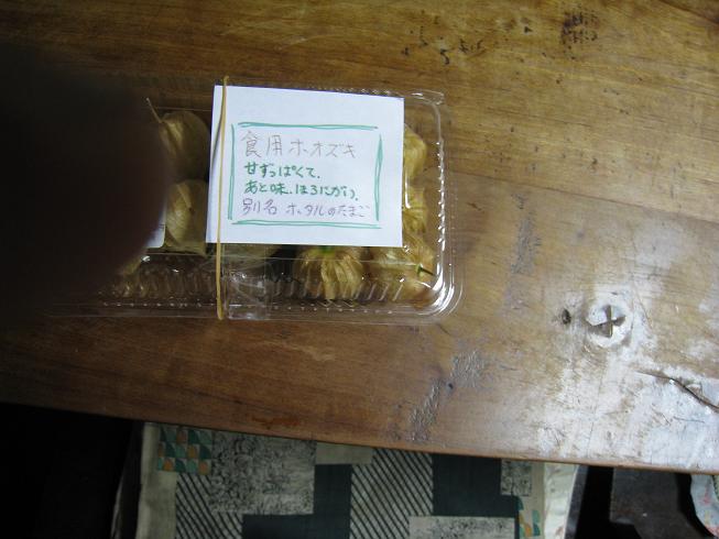 昨日、オードウが恵那市内のとある道の駅に寄ったら、食用のほうずきという物が売っていたので買いました。ホタルのたまごと書いてありましたこのほうずきは、結構甘くて少し酸味のある味でした。ちなみにここは蕎麦うち道場もやっていて食堂では腰のある蕎麦をたべさせてくれます。