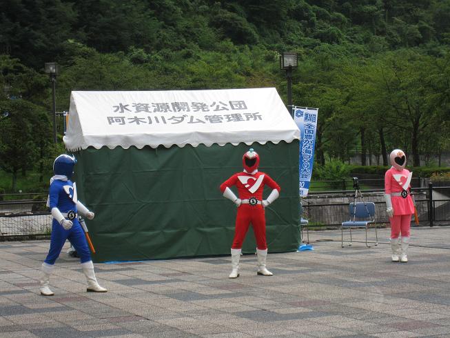 阿木ダムの催し物で会ったのは・・・・・・・・・・・・・・・何と下條村のカッセイカマンでした。フキョーダもいます。