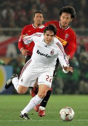 ●前半、ドリブル突破をするACミラン・カカ(手前)をマークする浦和・阿部