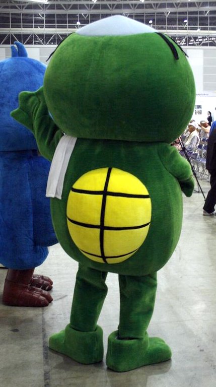 | 旧栗山村、現在は日光市の西川地区に残る河童伝説がモチーフ。 1987年から合併前の2003年まで開催された「かっぱ大祭」のキャラクターとして1998年に着ぐるみを作成。合併後は祭りが終了し、西川地区の自治会の倉庫で長い眠りについていました。 道の駅湯西川で再びカッパを用いた町おこしを企画した際に倉庫の奥から蘇りました。 道の駅湯西川にて不定期で登場する。 |