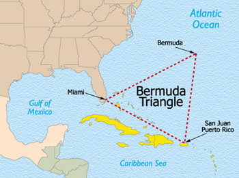 大西洋にあるプエルトリコ、バミューダ諸島を結んだ三角形の海域。
