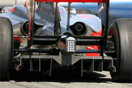 2009年レギュレーションのグレーゾーン「ディフューザー」。 規定では高さ175mmとなっていますが、レギュレーションのすきまを狙って 作られたダブルディフューザー型が3チームあります。 FIAから合法と認められたのですが、序盤の2戦はこの3チームのみ。 さて、2009年シーズン好調な滑り出しをした「ブラウンGP」のディフューザーはどれ?