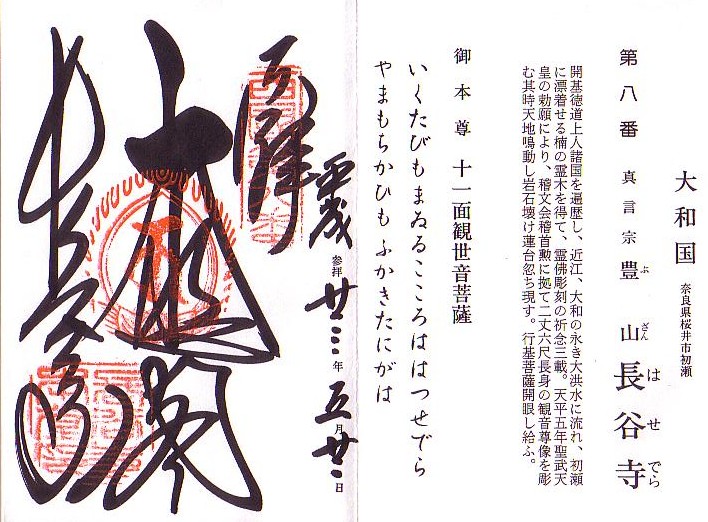 15:15西国観音霊場8番「豊山長谷寺」に参拝し御朱印を頂きました。