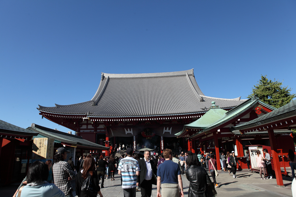 本尊の聖観音像を安置するため観音堂とも呼ばれる。旧堂は慶安2年(1649年)再建で近世の大型寺院本堂の代表作として国宝(当時)に指定されていたが、昭和20年(1945年)の東京大空襲で焼失した。現在の堂は昭和33年(1958年)に再建されたもので鉄筋コンクリート造である。外陣には川端龍子(かわばたりゅうし)筆「龍の図」、堂本印象筆「天人散華の図」の天井画がある。