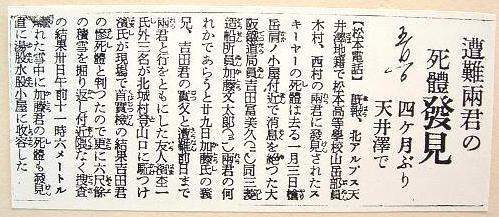 ※加藤文太郎の遭難と訃報を報じる当時の新聞記事