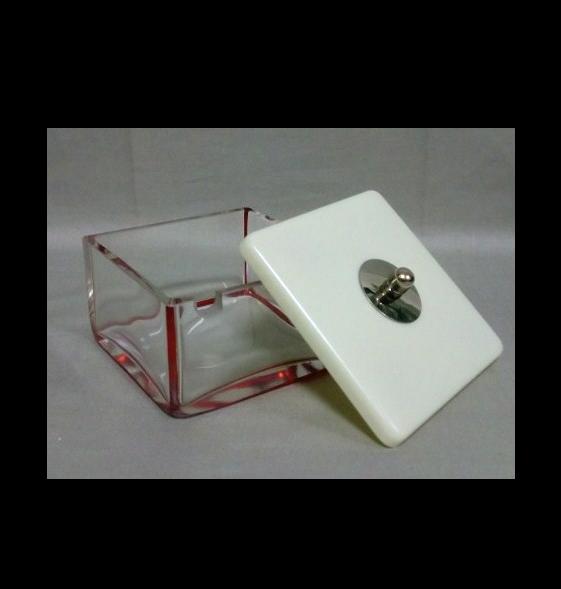 角型 赤被せガラス 蓋はプラスチック 検:カットガラス・気泡