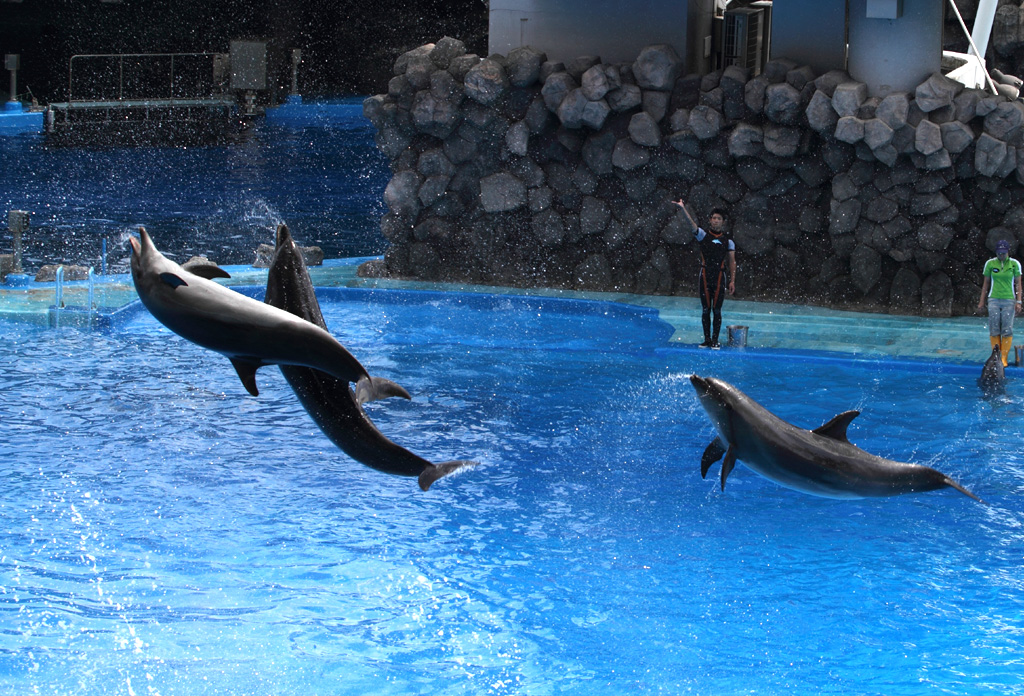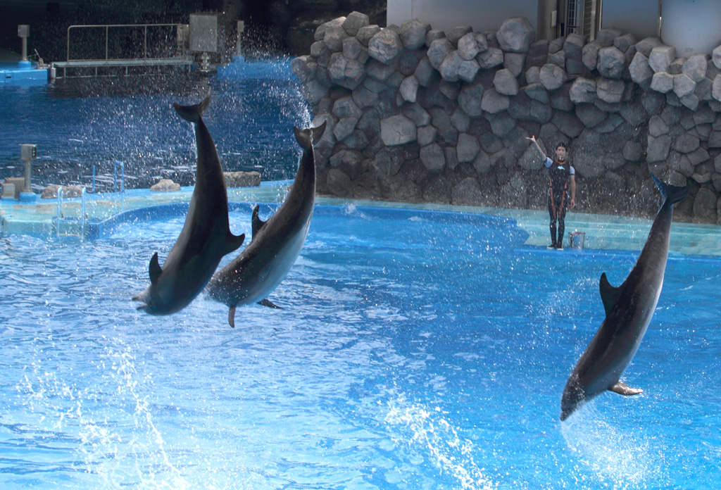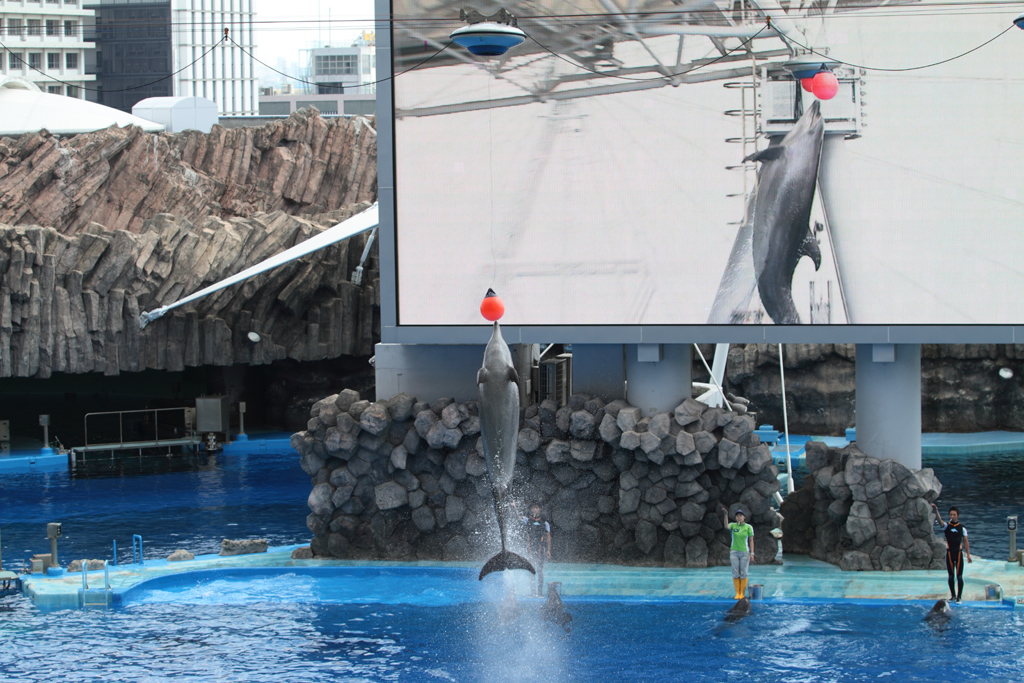 躍動感あふれる一枚でした。イルカのショーは一瞬ですので決定的な一枚は狙いすますか、運を任せるかどちらかです。この一枚のために