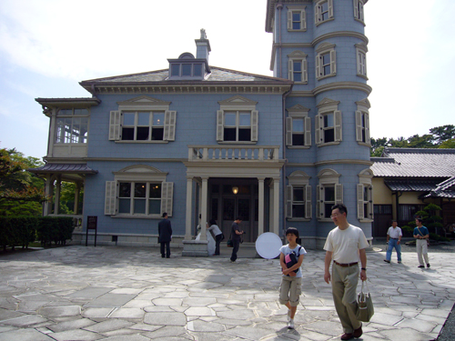 六華苑に入るとまず、木造2階建て天然スレート葺きの洋館が目に入ります。