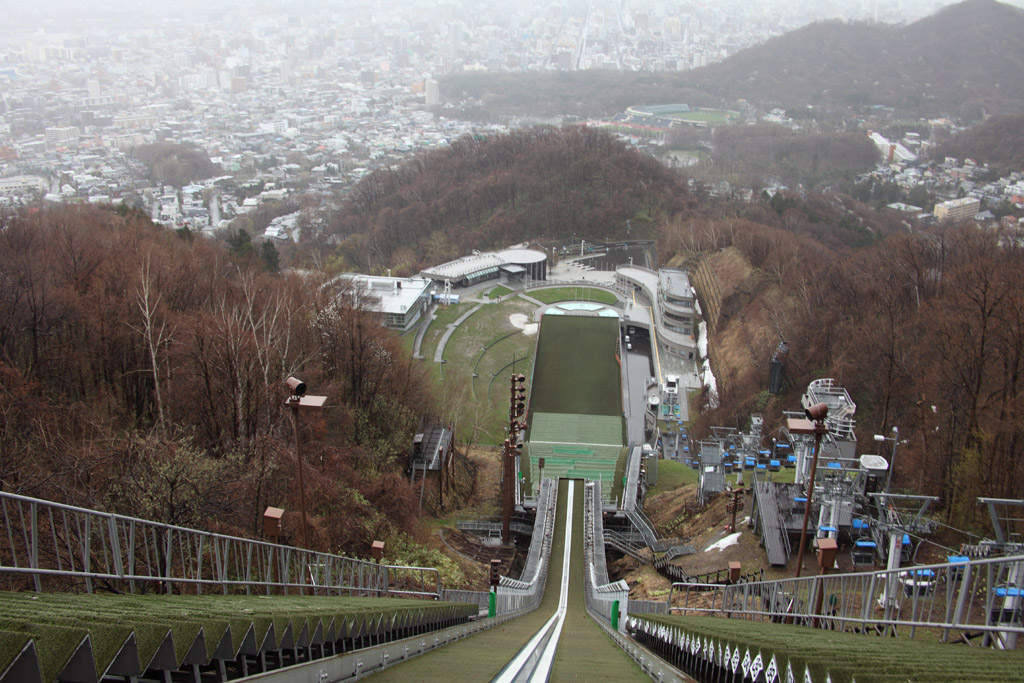 選手が立ったときの目線です。札幌市内にむけて飛び立つといった感じになります。普通の人間であれば絶対に踏み切ることが出来ない高さだと思います。