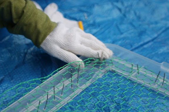 プラスチック衣装ケース、緑の金網、針金、お風呂のマット、人工芝!!
