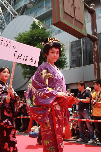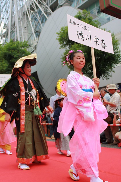 SKE48の皆さん3名、名古屋市のキャラクターはち丸くんが「徳川宗春道中」に登場。