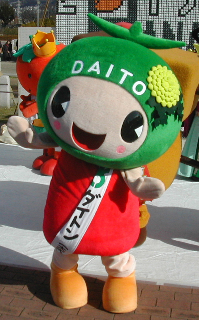 | 2011年11月3日に誕生した大東市マスコットキャラクター。 大東市の市章の大の字をモチーフに、頭に市の花の菊をあしらっている。 赤い胴体に触れるとちょっとだけ幸せになれるという噂が・・・ |