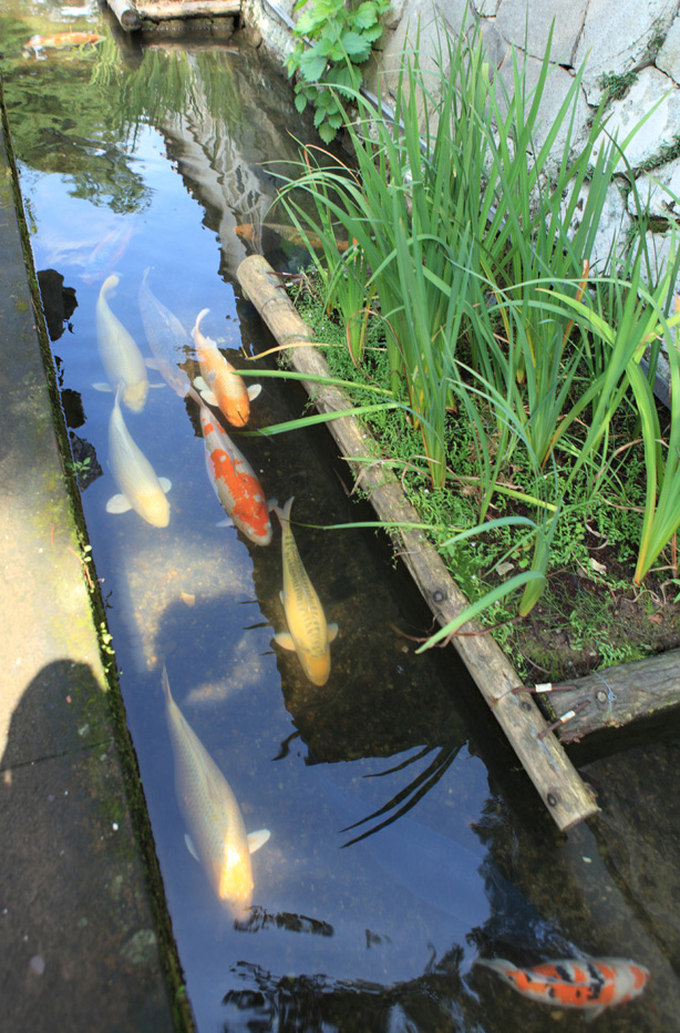 どうも津和野の鯉はおとなしいようですね。途切れることなく観光客が訪れ次々に餌をあげていくので、どれも超肥満体です・・。一番大きい鯉は86センチあるとか・・。
