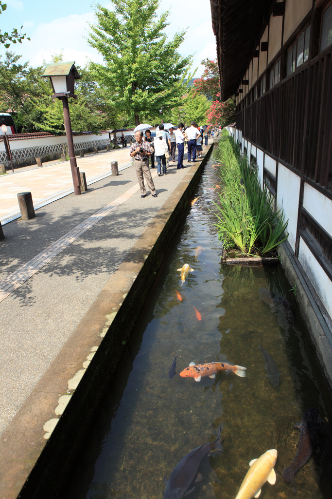 鯉と昔の建築物がコラボした町並み。広角側で広々とした雰囲気をだしてみました。
