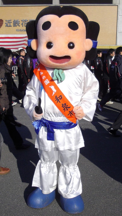 | 池上曽根遺跡の「いずみの高殿」「やよいの大井戸」が発掘された衝撃で2000年前に栄えた「イズミ国」からタイムスリップしてきた。 イズミ国の清らかな水を司る巫女。紀元前52年生まれで16歳。 手に持つ稲穂はイズミ国の豊穣の証し。 2013年、リニューアルされた。 |
