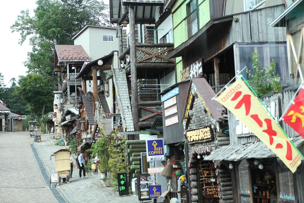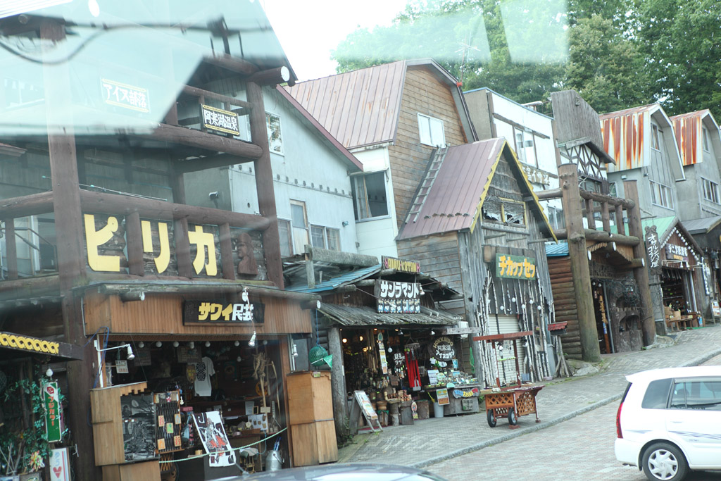 アイヌ文化を観光客に伝える目的で建設されました。お店の人は実際にアイヌの方々で、伝統的な彫り物などが販売されています。
