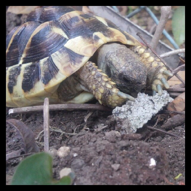 歩かせてみて思ったのは、一見ハデに見えるリクガメさんでも見失いやすい・・・!!