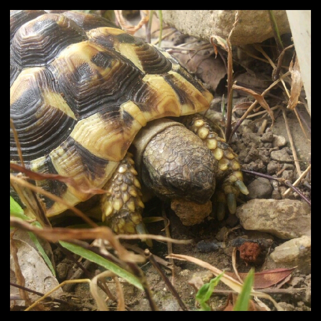 「ヘルマンリクガメって黄色と黒だし、一見ハデな感じがするしすぐわかるでしょ〜」と思ってましたが、