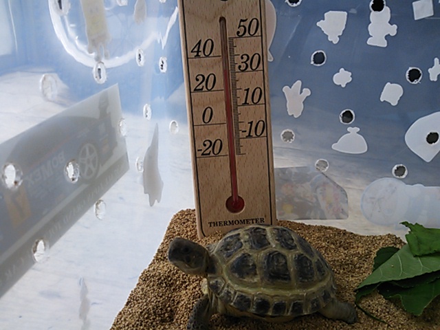 温度管理はエアコンのみで、秋〜春は25℃前後・夏は26〜28℃が目安。亀は、エアコンの直風は苦手です。水槽やケージは、直風が当たらない所に置いてください。