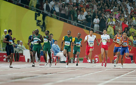 日本(塚原直貴、末続慎吾、高平慎士、朝原宣治)は予選1組2位に入り、