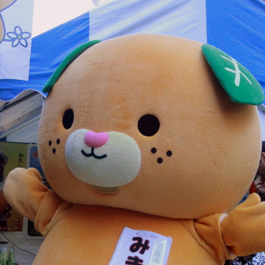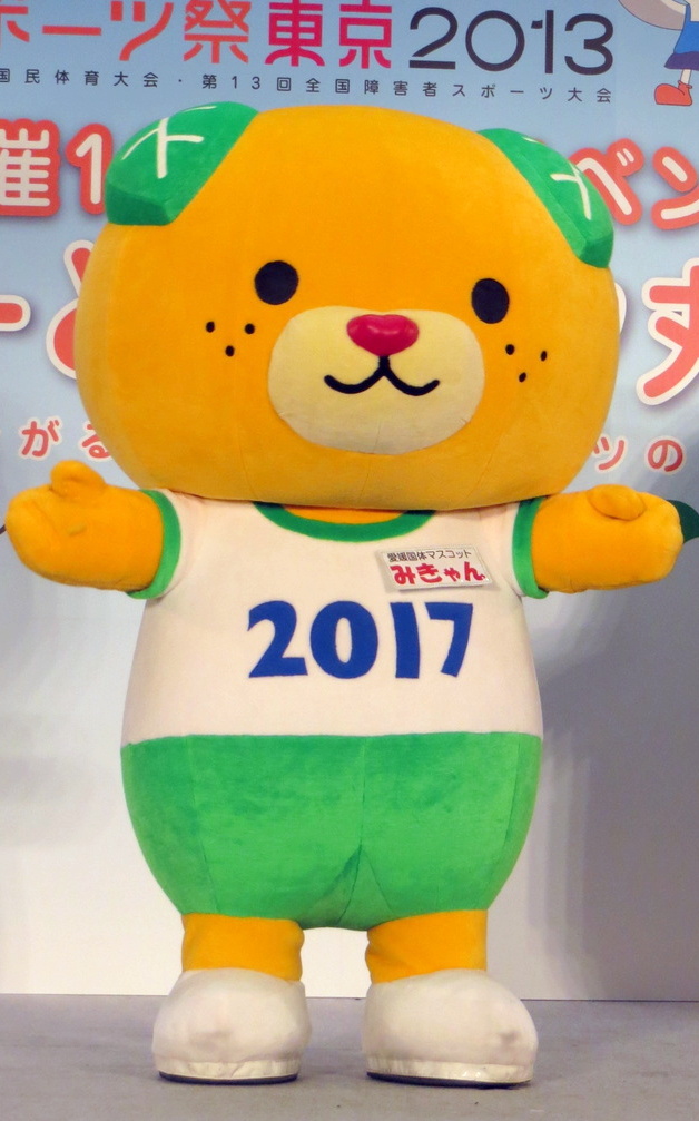 | 愛媛県の名産のみかんと「野をかける動物の形」と愛媛県の方言「〜やけん」から犬をモチーフとしている。 2011年11月11日(ワンワンワンワンの日)生まれ。ハート型の鼻とみかんの花の尻尾がチャームポイント。 2017年開催「笑顔つなぐえひめ国体」のマスコットキャラクターも務める。 |