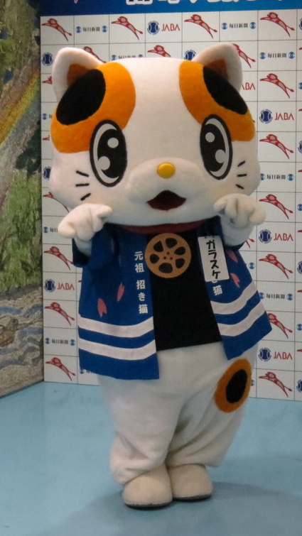 | 門真の民話「おすまさんと笑い猫」に登場する猫をキャラクター化。 まねき猫人形の元祖と言われている。2012年に公募でデザインを決定。11月の門真市地域伝統文化まつりで初披露された。 |