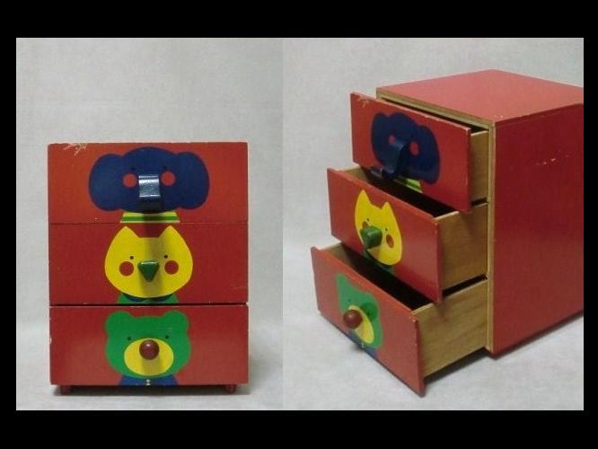レトロ サンリオ ゾウ・ネコ・クマさん 木製 3段小引き出し