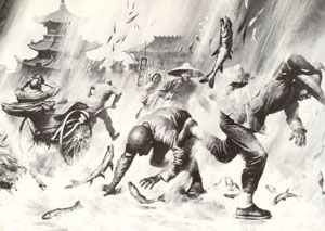 降ってきた。カエルは地面に落ちると、ピョンピョンと飛び跳ねたという。
