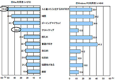 Macユーザーは「人と違ったことをするのが好き」と答えた人が51.8%、