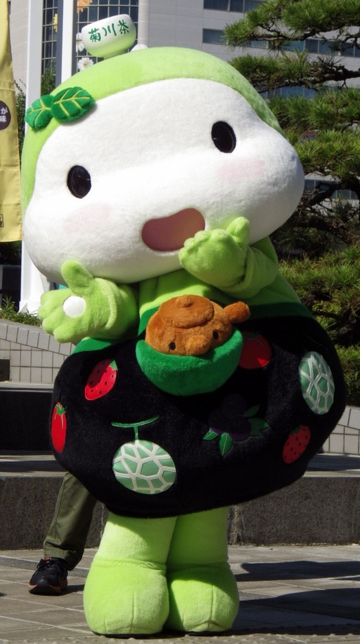 | 菊川市制10周年を記念して誕生。市民からの公募デザインを元に地元出身の漫画家小山ゆう先生とスタッフが描いた4種のデザインの中から投票で選ばれた。 正確はおっとりで、ポケットの中身は菊川市の名物を色々取り替えできる。 パンツにもたくさんの名産がくっついていて重みでパンツが少しずり落ちている。 |