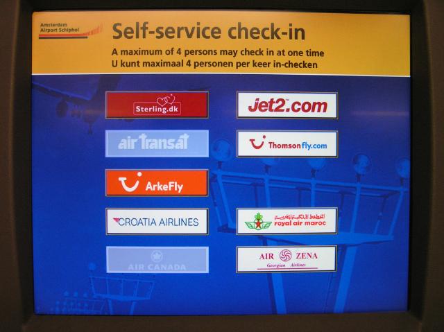 写真はオランダのアムステルダム空港の自動チェックイン機で、