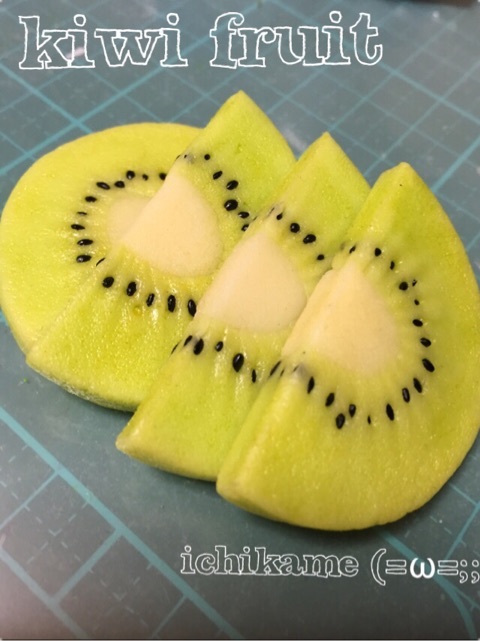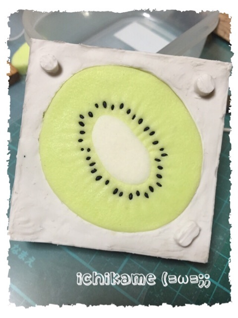 まずはじめに、両サイドにあるキウイを、モデナという樹脂粘土で作ってみました。