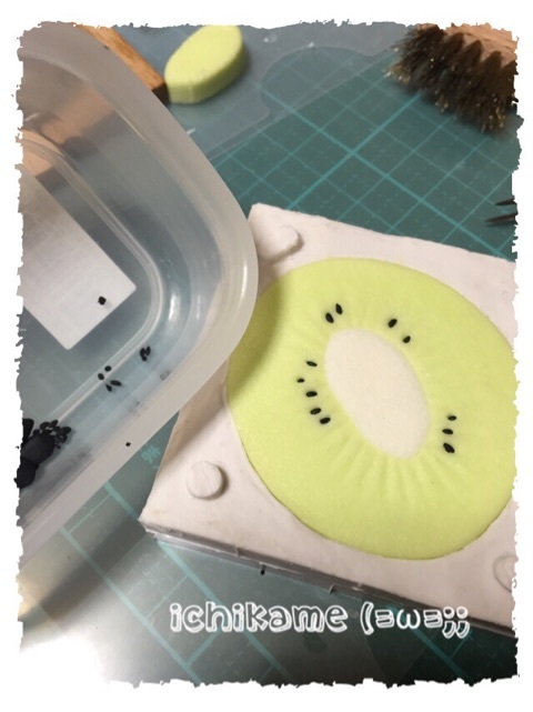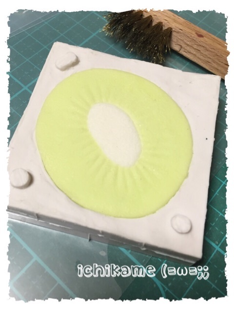 油粘土で作ったキウイの原型を、Mr.シリコーンで型取りしたオリジナル型です。