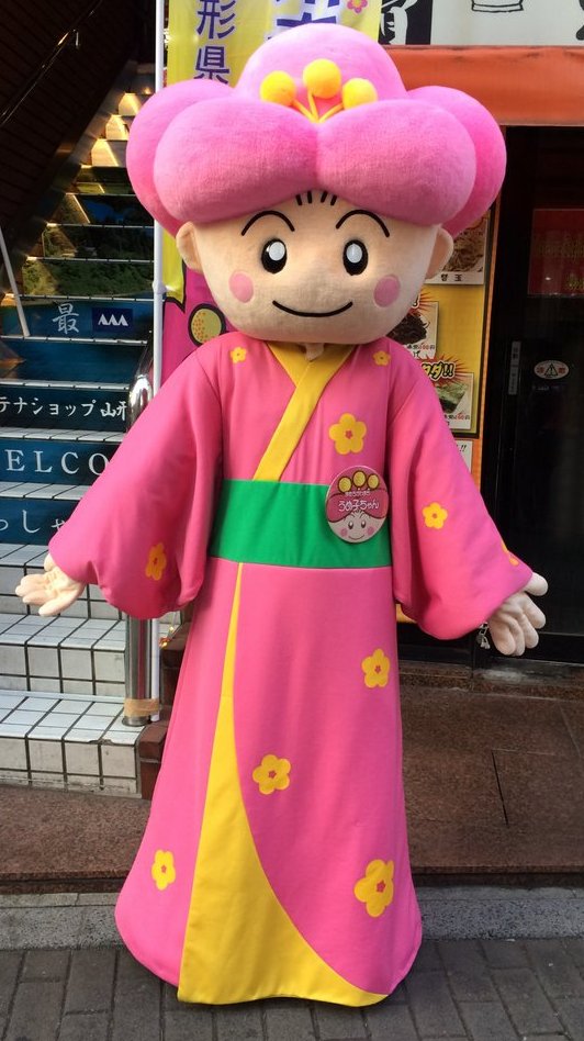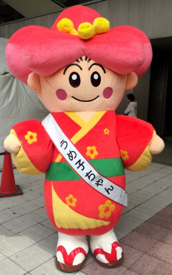 | 梅の花の妖精。元気一杯で踊り、歌、ダンス、スポーツも大好きで、真室川町では様々な格好の梅子ちゃんがみられる。「梅里苑」の温泉で肌はツルツル、美肌の妖精。 |