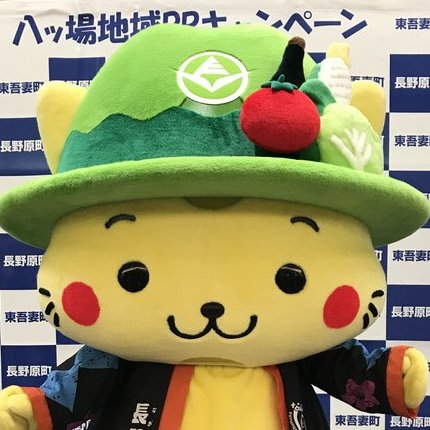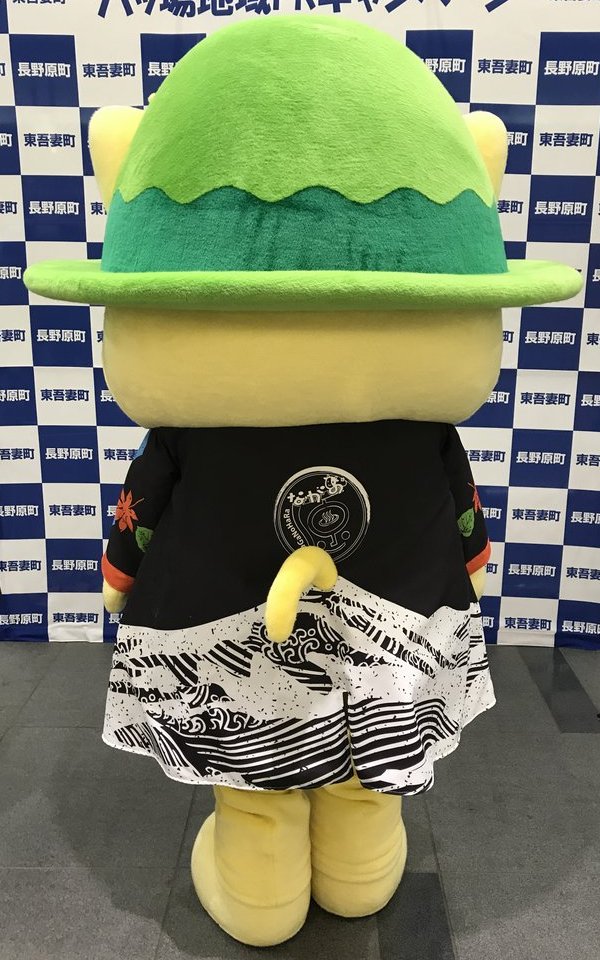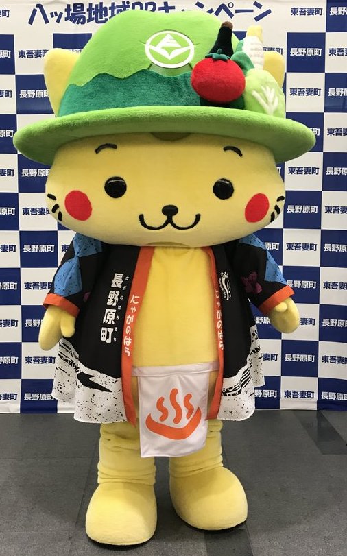 | 2017年1月誕生、長野原町マスコットキャラクター。 猫が町内の川原湯温泉で開催される奇祭「湯かけ祭り」の参加者のようにふんどし姿の格好をしている。 頭には浅間山をイメージした緑色の帽子をかぶり、その上には特産のトウモロコシやキャベツ、トマト、日本酒が載っている。 八ッ場ダムと吾妻峡、川原湯温泉をPRするため県内外で活躍する。 |