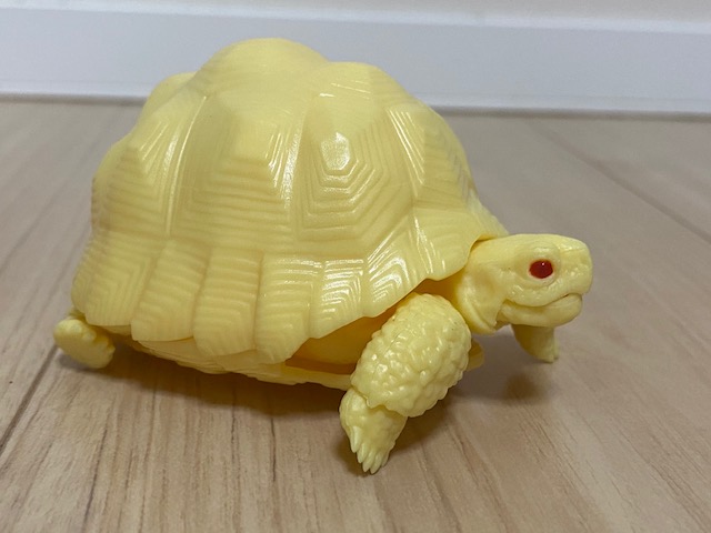 前回のガチャでは、インドホシガメのノーマル・アルビノ(ホワイト)が出て、今回はアルビノ黄色種。やっぱり、このフォルムが可愛すぎます。