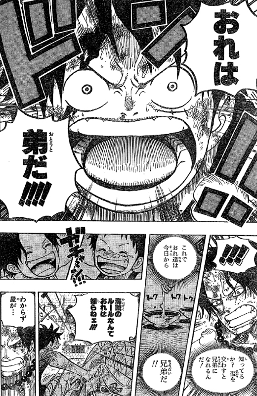 そこでルフィに、来るなと言うエース!!海賊として思うままの海へ進み それぞれの冒険があり仲間がいる、立ち入られる筋合いはない、帰れとルフィを制止しようとします!それは、ルフィを自分の失態で道連れにしたくないというエースの想いからでした!しかしルフィは おれは弟だ!!と言い戦い続けます!!
