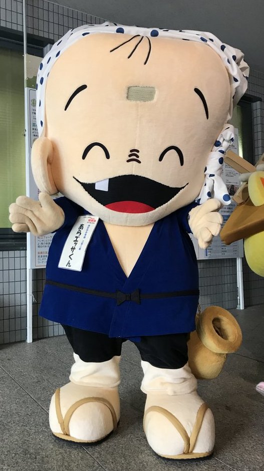 | 小学3年生(9才)の男の子 身長120cm、体重25kg。 性格は天真爛漫でおっちょこちょい。 特技はどじょう掬い踊り 元々は、市広瀬地域センター長の石田行生さんが、市の広報チラシなどに描いた挿絵のキャラクター。 平成15年、デザイン会社の目に留まり「とてもよいですね」と太鼓判をもらった。これをきっかけに、市のマスコットキャラクターに正式採用が決まり、16年5月に名前を公募。 公報の4コマ漫画にはあらエッサくんの家族も登場します。 |