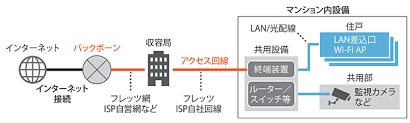 近年、スマートフォンの普及や動画配信サービスの普及に伴い、集合住宅もネットの速度や品質が求められる時代になりつつある。しかし、既存の建物は構造や費用の麺でLANケーブルを敷設することができず、十分な品質を提供することができなかった。また、住宅内の工事調整に伴う人の費用の課題も発生しています。